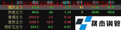 今日螺紋主力期貨跌54,收報4743,跌幅1.13%;熱卷主力跌66,收報4850,跌幅1.34%;焦煤主力漲3.5,收報2593,漲幅0.14%;焦炭主力漲16,收報3356.5,漲幅0.48%;鐵礦石主力跌0.07,收報684.5,跌幅0.07%。