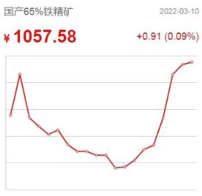 3月11日,根據今日鐵礦的消息來看,本周進口鐵礦石價格整體下跌,而國產鐵礦價格走勢良好。分類別來看,進口65%粉礦現貨貿易價格1266.89元/噸,較前一個交易日下跌56.3,跌幅4.25%;進口65%粉礦到岸價格186.69美元/噸,較前一個交易日下跌2.26,跌幅1.2%;國產65鐵精礦漲0.91收于1057.58元/噸,漲幅0.09%;國產62%鐵精礦漲0.75收于944.37元/噸,漲幅0.08%。